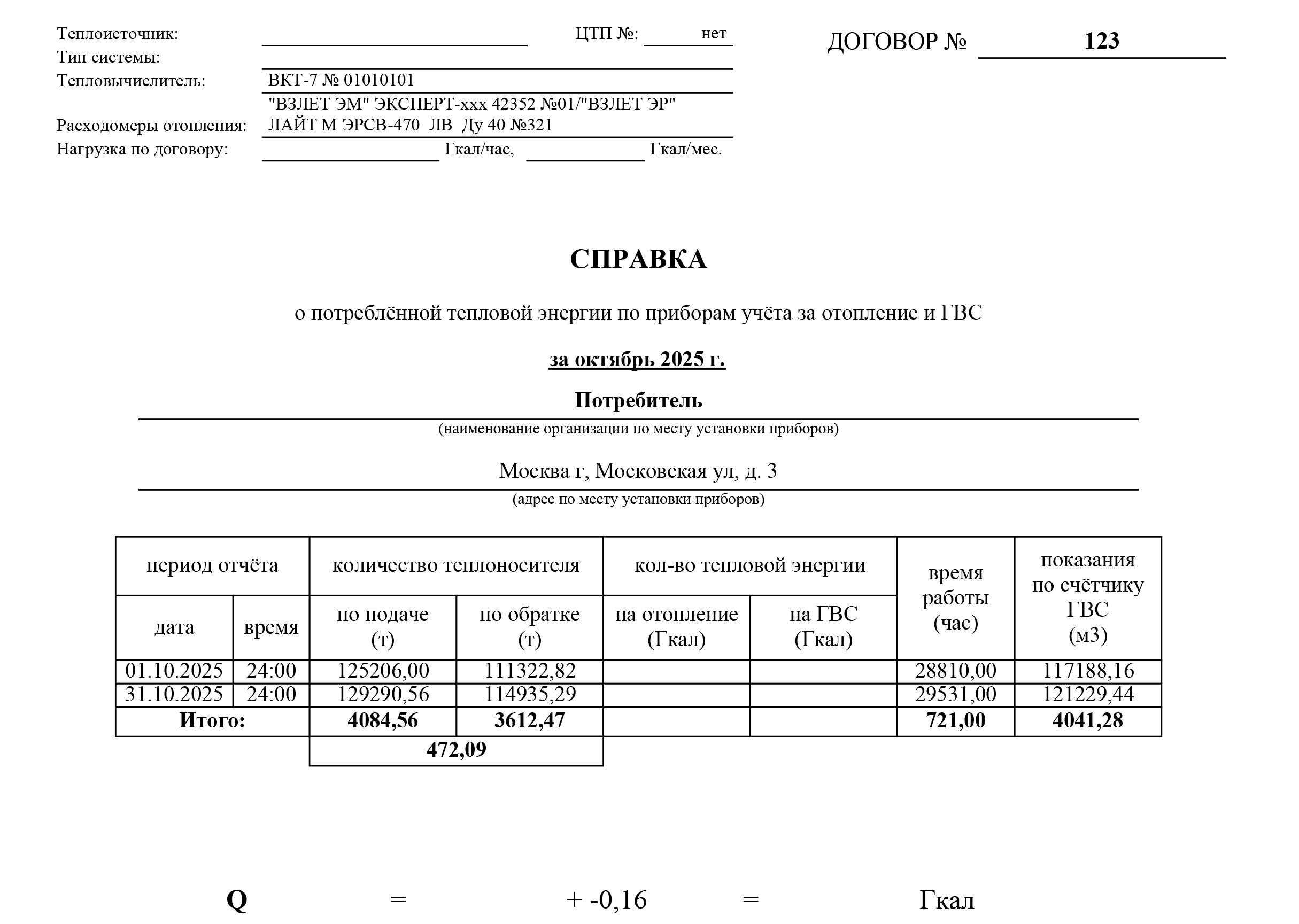 - Энергетические компании — поставщики тепловой энергии применяют отчет для мониторинга объемов поставок, анализа спроса и корректного выставления счетов клиентам.