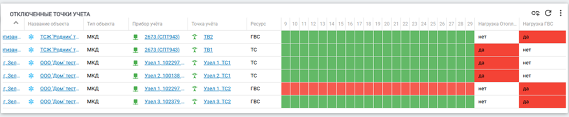 - Бледно-красный — полное отключение за сутки, определенное по приборам учета.