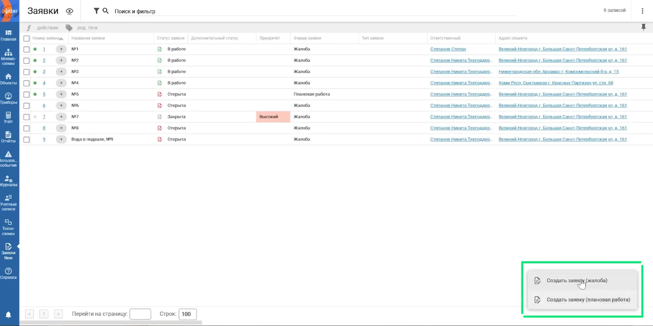 Существует два сценария создания заявок, в которых фиксируются проблемы и задачи по их устранению.