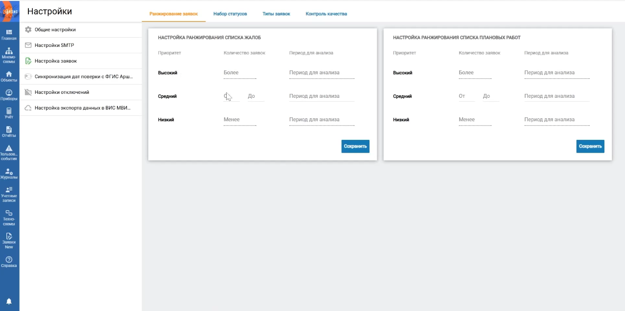 - Автоматический — настраивается в разделе «Ранжирование заявок». Критерием выступает количество обращений по объекту: например, до 5 жалоб за месяц — низкий уровень важности, 5–10 — средний, свыше 10 — высокий.