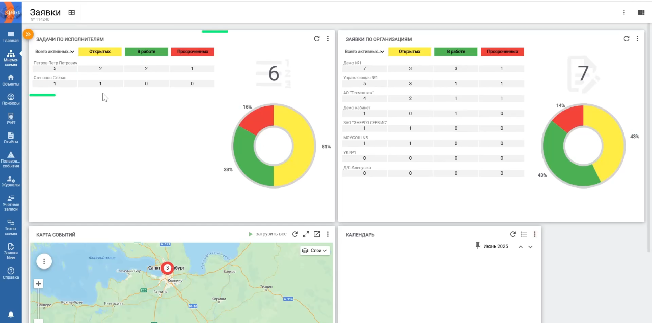 Для контроля выполнения заявок в системе предусмотрены аналитические инструменты.